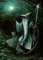 » Du möchtest eines Tages mit Deiner Fantasy-Kunst Geld verdienen. Besteht die Gefahr, daß Du wegen 'aufgezwungener' Themen die Lust verlierst bzw. als 'Hochgeschwindigkeitszeichner' möglicherweise den Kundenwünschen nicht nachkommen kannst? Ja, diese Gefahr besteht sicherlich. Ich habe unter anderem aus dem Grund lange nicht viel gezeichnet, weil sehr viele Leute dann immer Zeichnungen wollten, und ich langsam den Spass verlor, zumal ich selten das zeichnete, was ich gerne gezeichnet hätte. Aber das geht heute schon viel besser, da muss man sich halt auch mal in den A klemmen, und durchbeissen. Gut, wenns dann mit dem Zeichnen nichts wird, soll man es nicht erzwingen, und es am nächsten Tag wieder probieren. Ich arbeite zur Zeit als Designer mit einer Gruppe sehr netter Leute zusammen an einem PC-Spiel, wobei es im Moment absolut nicht der Fall ist, dass ich mich den Wünschen hinterher schleppen muss, und ich hoffe, das wird sich vorläufig nicht ändern. ;-) Aber als ein Team von Freischaffenden besteht natürlich auch kein so grosser Druck. Wenns dann mal ums Ganze geht hab ich grade als schneller Zeichner den Vorteil, dass ich mir mal ne Pause gönnen und immernoch etwa gleichschnell wie der Durchschnitt liefern könnte. Müsste sich vorteilhaft auswirken auf diese Problematik...zudem habe ich heute den Willen! » Die Fantasy-Charaktere sind weltweit hauptsächlich auf Drachen, Elfen, Magier, Zwerge usw. festgelegt. Gibt es einen nur in der Schweiz vorkommenden Fantasy-Charakter, gewissermaßen als regionale Besonderheit? Höchstens mich. *g* Nein, es gibt weder Bergtrolle noch Käsedrachen hier, aber ich persönlich favorisiere eindeutig die Rasse der Zwerge, und zumindest diesbezüglich ist man in der Schweiz ja Bergen-mässig recht gut aufgehoben. » Hätten Wesen aus fernen Welten eine Chance, in Deine Malerei einzuziehen und eine größere Bedeutung erlangen? Klar, falls mich etwas ebenso oder mehr begeistert und/oder inspiriert, wie das Fantasy tut? Es kommt immer wieder mal vor, dass mich irgend etwas oder jemand so beeindruckt, dass ich dies zeichnerisch ausführe, und in dem Moment hat dies sicher eine "grössere Bedeutung". Aber ich glaube nicht, dass sich etwas, das nicht aus der Welt des Fantasy stammt, konsequent zu einem wichtigen Bestandteil meiner Kunst machen wird - obwohl ich das nicht völlig ausschliesse, wie könnte man das auch. Man weiss ja nie, was einem so passiert. ;-) » Wie stellt sich die Situation der Fantasy-Kunst und der Künstler in der Schweiz dar? Wie ist die Akzeptanz? Die Akzeptanz ist ok, ausser natürlich bei der etwas älteren Generation, die - vermutlich nicht nur hier - doch vermehrt nicht auf Fantasy abfährt. Da hört man dann oft: "ist halt nicht so mein Stil, aber ist nicht schlecht." oder sowas... Auch bei der weiblichen Bevölkerung sind die Meinungen zum Teil sehr geteilt. Die "Monster" sind zu furchteinflössend, die Schwerter und Äxte zu brutal und oder Brüste der Frauen zu gross. Im Gegenzug kommen da dafür Elfen usw. viel besser an. Alles in allem das, was zu erwarten ist. Ich versuche aber, verschiedene Bilder zu machen, mal ein brutales, mal ein sehr sanftes, mal ein düsteres, mal ein sonniges, ich versuche, mit den Stimmungen zu spielen. Und so ist auch meist für jeden etwas dabei, was ihm/ihr gefällt. Soviel zu Akzeptanz, was hier aber sehr fehlt, zumindest in meinem Umfeld, ist "Verständnis" für Fantasy. Man achtet die Kunst, doch nur wenige kennen oder gar lieben Fantasy. Aber ich gebe die Hoffnung nicht auf, dass das nur deshalb ist, weil hier alles etwas später ankommt *g* und das hier auch etwas bekannter wird. Ich versuche, mein bescheidenes Bisschen dazu beizutragen... » Ist Dir ein Vergleich möglich zwischen der Schweiz und Deutschland bezüglich der Akzeptanz? Bezüglich der Akzeptanz nicht. Ich kenne die Reaktionen der Deutschen Bevölkerung auf meine Bilder fast ausschliesslich aus dem Internet, bedingt durch meine Galerien, und da kommen - egal welcher Nation - eh meist nur welche hin, die Fantasy bzw. Fantasykunst mögen, sonst wären sie ja nicht da. Und so kenne ich nur äusserst positive Reaktionen. In Deutschland, das muss ich feststellen, finde ich aber deutlich mehr Gleichgesinnte, was ganz sicher nicht nur an der grösseren Einwohnerzahl liegt. » Die Schweiz ist mehrsprachig mit unterschiedlichen Kulturkreisen. Schlägt sich das in der Fantasy-Kunst nieder? Das wird bei jedem wieder anders sein. Bei mir - wenn ich das überhaupt so sagen kann - glaube ich das nicht, da ich zeimlich zentral wohne und relativ selten mit den anderssprachigen Teilen des Landes zu tun habe. Man trifft aber auch hier sehr viele unterschiedliche Kulturen. Dies hat sicherlich einen Einfluss auf mich, meine Persönlichkeit und mein Leben, und somit vermutlich auch etwas auf meine Kunst. Andere Kulturen öffnen immer neue Perspektiven, und dadurch kommen neue Ideen, aber dies sind, glaube ich, zumindest bezüglich Fantasy-Kunst eher milde Einflüsse, da Fantasy eine separate Welt ist, die ich klar von dieser trenne und somit relativ unabhängig von Ereignissen dieser Welt existiert, und beim Zeichnen kommen die meisten Einflüsse entsprechend von dort. » Auch an Dich die Frage über das leidige Problem Copyright. Hast Du damit schon negative und / oder positive Erfahrungen gemacht? Nur positive, aber das vermutlich deshalb, weil ich alle bisherigen Werke jedem gerne gratis zur Verfügung stelle. Diese Bilder haben den primären Zweck, Menschen eine Freude zu machen und etwas Promotion zu betreiben, damit es evtl. mal beruflich was wird. Denn wenn ich zuhaus rumzeichne und die Fetzen dann an die Wand pappe, wird das - gerade durch das mangelnde Fantasy-Interesse in der Schweiz - nie klappen. Bekomme öfters mal Anfragen, ob ein Bild von mir irgendwo im Netz für Homepages oder was auch immer verwendet werden dürfe. Und da sage ich grundsätzlich nie Nein, ich liefere das Teil jeweils auch noch in besserer Qualitä