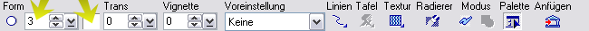 2. Nun nimm den Pinsel und wählen folgende Einstellungen: Die Größe habe ich 3 gewählt. Farbe weiß. Transparenz und Vignette 0. |