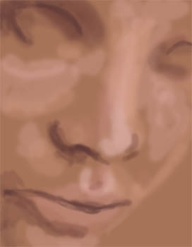 Zuerst wie immer eine kleine Skizze. Die habe ich dann in dem braunen Hintergrundton eingefärbt und mit hellen und dunklen Tönen eine Grundstruktur festgelegt. Also Nase, Augen und Mund ungefähr festgelegt.