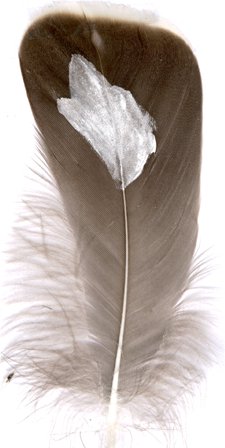 Als erstes wird die Feder mit Deckweiß grundiert - also nur da grundiert, wo später die andere Farbe aufgetragen werden soll. Wieso das? |