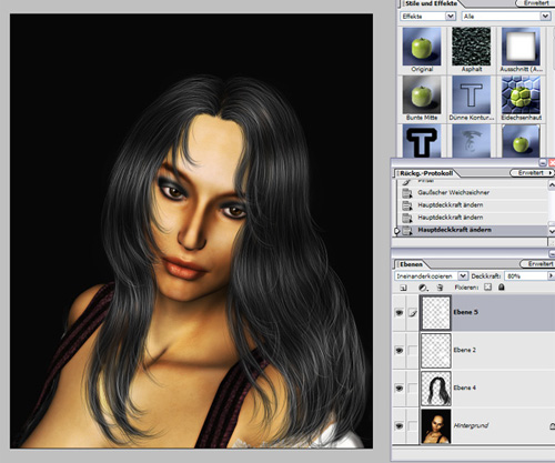 Damit endet dieses kleine Tutorial. Ich hoffe, dass ich euch ein wenig dabei helfen konnte, euren Weg durch die Haarmalerei zu finden oder die ein oder andere Anregung bieten konnte. Das Bild in diesem Tutorial ist mittlerweile ein bisschen älter und vom heutigen Standpunkt aus muss ich sagen, dass man daran einiges besser machen kann (es wirkt einfach noch sehr flach und etwas blockig) – aber genau darum geht es ja am Ende. Sich immer weiter zu verbessern.