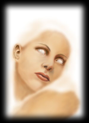 Ich hab sie in einem hellen Graubeigeton angelegt, die Mitte jeweils noch etwas aufgehellt, um die Wölbung besser hervortreten zu lassen, und die Ränder dunkler schattiert. Auch die Schatten in den Augenhöhlen wurden noch vertieft und die Kanten der Lider vorsichtig aufgehellt.