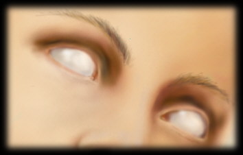 Nein, es wird kein Horrorportrait, obwohl es im Moment vielleicht so aussieht *g*. Aber bevor wir die Iris und die Pupille und all das malen, müssen ja erstmal die Augäpfel gezeichnet werden. Und die sind nicht einfach nur eine weiße, platte Fläche, sondern sie sind kugelförmig, also wird auch hier wieder mit Schattierungen die Form ausgearbeitet. Und sie sind nicht nur weiß, obwohl man immer vom "Weißen im Auge" spricht.