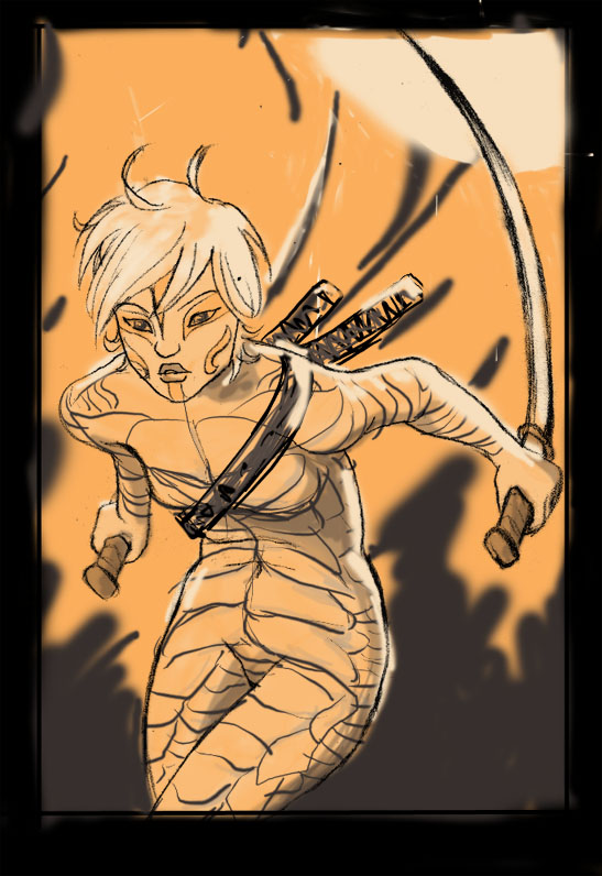 Außerdem kamen noch die zwei Schwertscheiden dazu und ich änderte die Position des linken Schwertes.