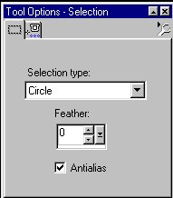 4. Mit dem Füllwerkzeug Flood-Fill füllt ihr nun die Selektion. Und da wir keinen ganzen Kreis brauchen können, werfen wird die Hälfte davon wieder weg. Dazu muss mit dem Selection-Tool die Einstellung "Rectangle" gewählt und der halbe Kreis markiert werden. Anschließend mit der "Entf"-Taste die nicht mehr benötigte Hälfte löschen: