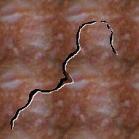2. Nun nehmen wir das Freihand-Lassowerkzeug und malen in unser Bild den Kratzer hinein. Es sollte darauf geachtet werden, dass der Riss auch schmal und sehr verwinkelt ist, denn um so realistischer ist später das Endergebnis. 3. Nun eine neue Rasterebene erstellen und die Auswahl mit Dunkelgrau ausfüllen. Der Wert der neuen Ebene muss daraufhin auf "Betrag" gestellt werden. Dann sollte euer Ergebnis in etwa so aussehen. 4. Nun wiederum eine neue Ebene anlegen und diese mit dem Effekt Aussparung (unter 3D-Effekte) behandeln. Hierbei kann ein wenig mit den Einstellungen gespielt werden, um das gewünschte Ergebnis zu erhalten. Wir haben in diesem Falle Deckfähigkeit 100, Farbverlauf 1, Horizontal und Vertikal auf 3 verwandt, doch je nachdem, wie tief der Riss erscheinen soll, können auch höhere Werte eingetragen werden. 5. Um den besonderen Effekt noch zu verbessern, fügen wir nun eine Rasterebene ein und belegen diese mit dem Schatteneffekt. Farbe "weiß" Deckungsgrad 100, Farbverlauf, Horizontal und Vertikal jeweils auf 1. So in der Art sollte dann euer fertiges Ergebnis aussehen, den ein Metallgegenstand in eurer Mauer hinterlassen haben könnte: